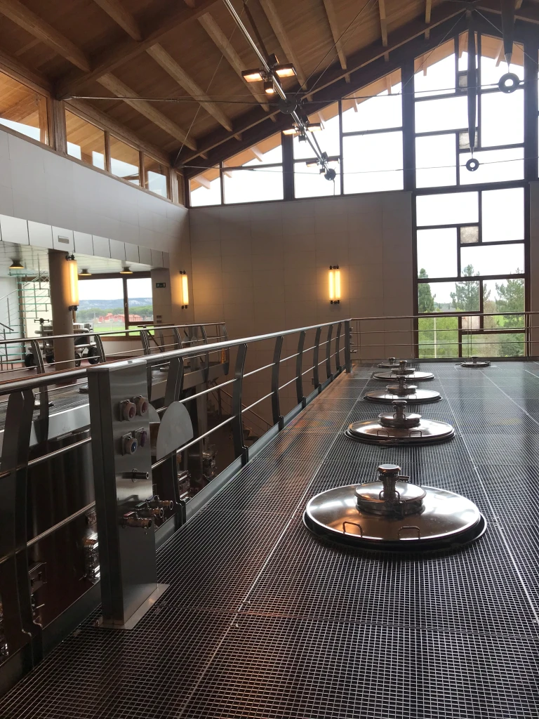 Entrando en el tema de elaboración, nos explicaron cómo hacen la vendimia, de día, recogiendo la uva en cajas de 12 kg que pasan 12 horas en cámaras frigoríficas antes de pasar a depósitos de fermentación, donde levaduras propias seleccionadas empiezan a hacer su trabajo transformando el azúcar en alcohol.